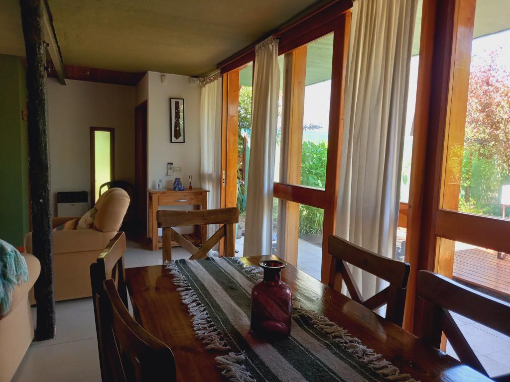 Cuanta con jardín, deck con juego de patio, cochera cubierta, parrilla individual, wifi, cable, alarma, ropa de cama, aire acondicionado en planta alta, aceptamos mascotas pequeñas y medianas educadas.