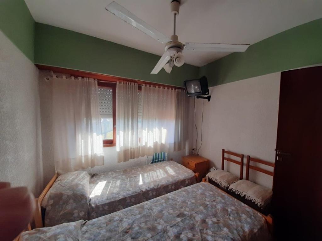 Dormitorio: 2 camas de 1 plaza con colchones de alta densidad nuevos y protectores lavables. Placard con baulera. TV de 14''. Ventilador de techo.