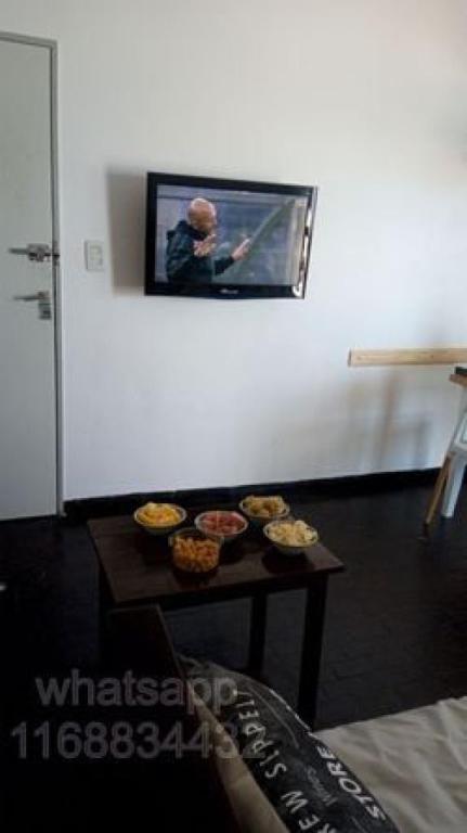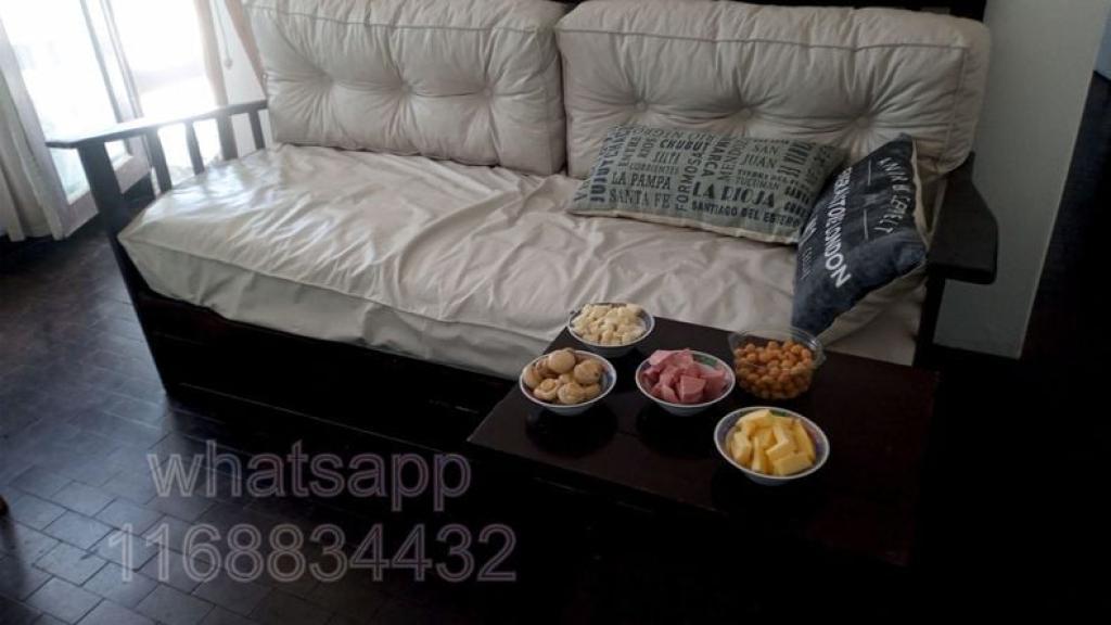 Living: sillón diván de 1 plaza con carrito (colchones de resortes y gomaespuma), TV LED de 32" con videocable, Wi-Fi con cobertura 2.4 y 5 GHz, mesa y sillas para 4 personas.
