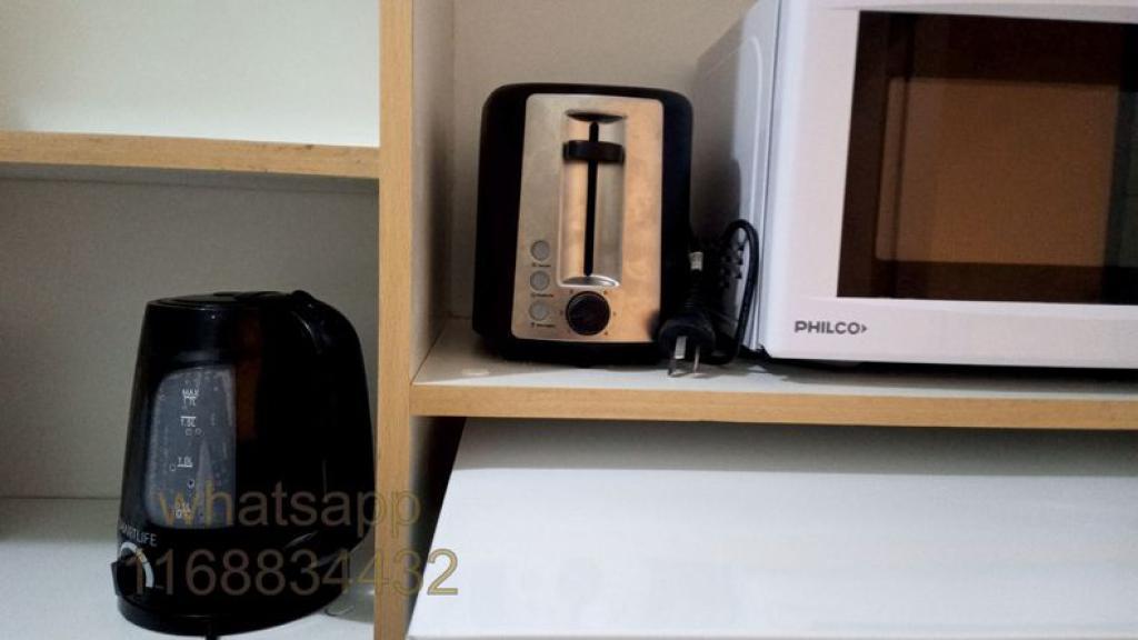 Cocina separada: equipada con heladera con freezer, tostadora eléctrica, pava eléctrica, microondas, vajilla y menaje para 4 personas.