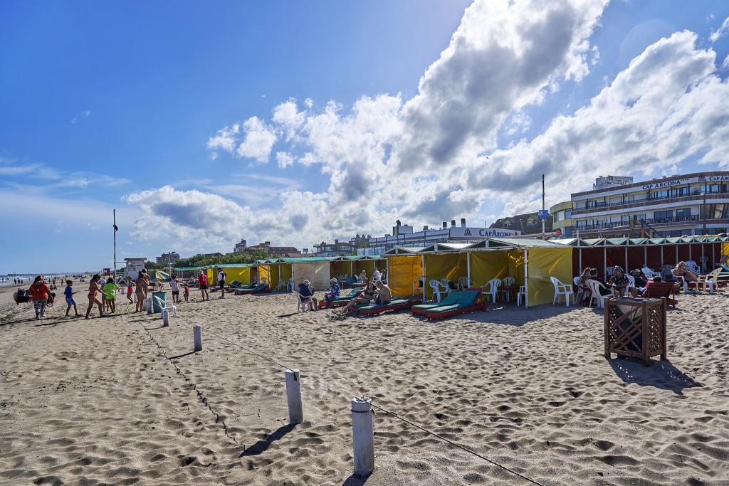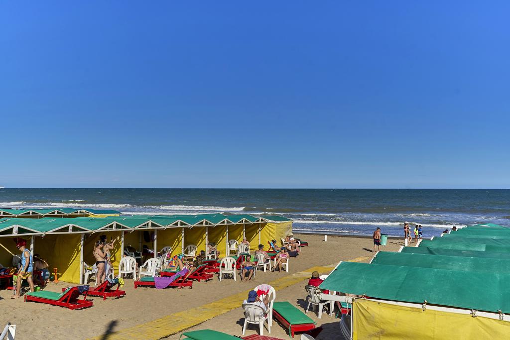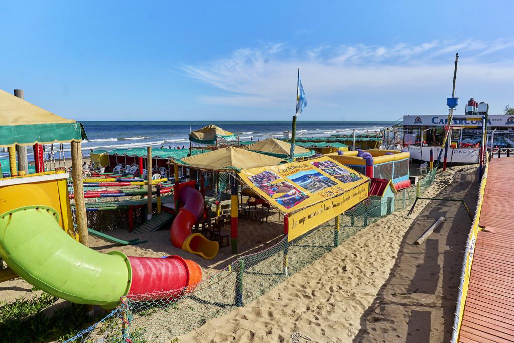 Carpa en el balneario con reposeras, recreación, juegos para chicos, baños y Wi-Fi.
