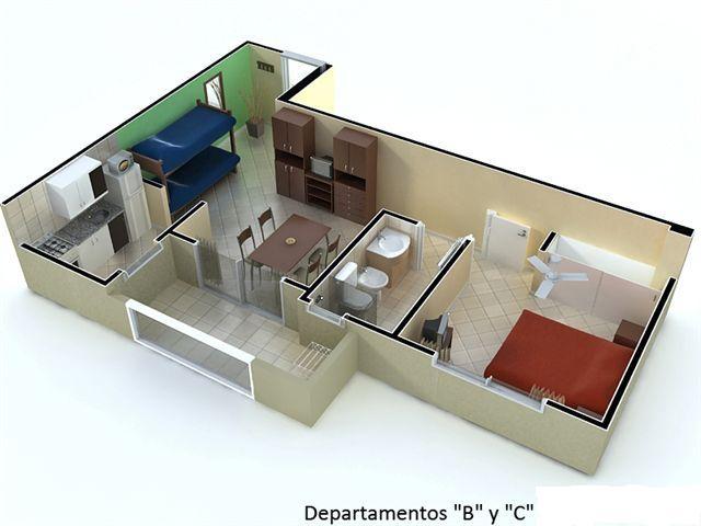 Dormitorio y estar comedor con 2/3 camas adicionales.